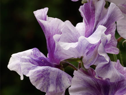 Scent is a difficult characteristic to breed. Expression of scent is very much dependant on temperature and humidity, while different people have differing ability to detect scent. Notwithstanding, Keith's work in combining the colours of the ancestral cultivars with bigger flowers and longer stems has also resulted in strongly perfumed cultivars. His 'High Scent' is recognised as the world benchmark for scent. This has smaller flowers with a clamped keel, but new introduction 'High Society' combines a waved, crisp white ground picotee edged pink flower with strong scent.